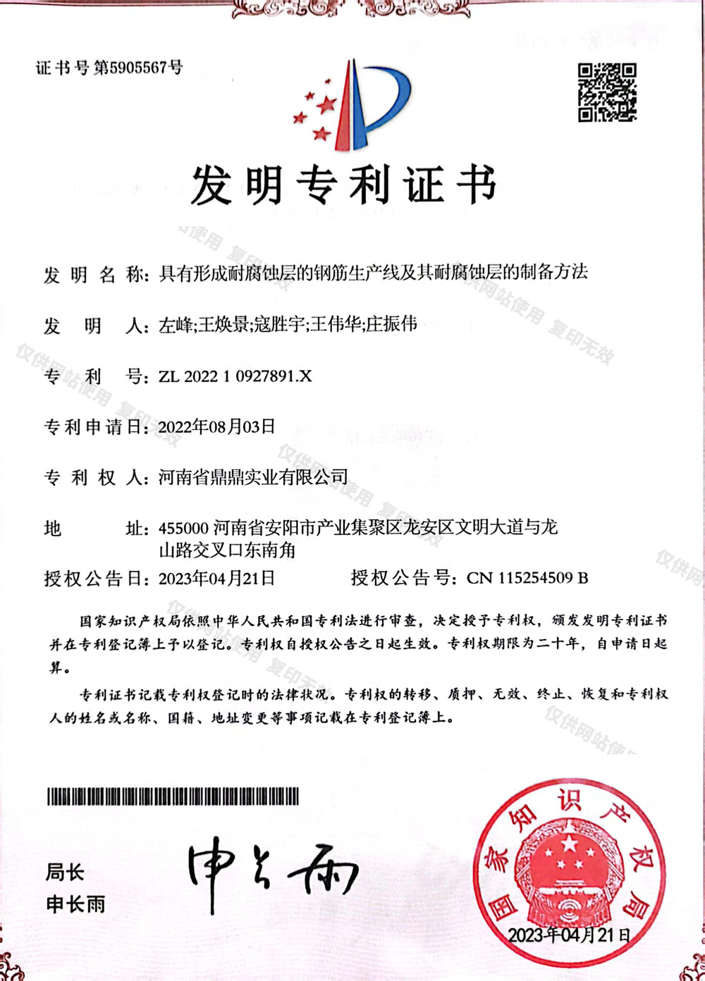發明專利證書